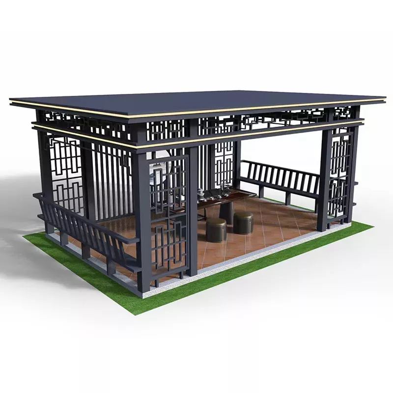 Courtyard Leisure Pavilion (3000×3000mm): 80×80mm column, maliit na berdeng tile na bubong, simpleng inukit na hanging lattice, angkop para sa mga pribadong courtyard;