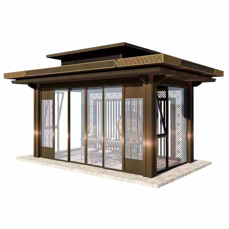 Ito ay may malakas na kakayahang umangkop sa estilo: para sa klasikal na istilong Tsino, borneol wood, glazed tile roof, kumplikadong mga ukit ay maaaring mapili, na itugma sa batong base upang ipakita ang solemnidad ng sinaunang arkitektura; para sa bagong istilong Tsino, maaaring gawing simple ang mga ukit, maaaring pumili ng mapusyaw na kulay na kahoy, itugma sa mga modernong elemento tulad ng salamin at metal upang lumikha ng simple at eleganteng istilo; para sa mga panrehiyong istilo ng kultura, ang mga lokal na pattern ng katangian (tulad ng mga ukit na istilo ng Suzhou, istilong Huizhou na upturned eaves) ay maaaring isama upang magkasya sa tema ng landscape ng rehiyon at mapagtanto ang pagsasama ng kultura at aesthetics.